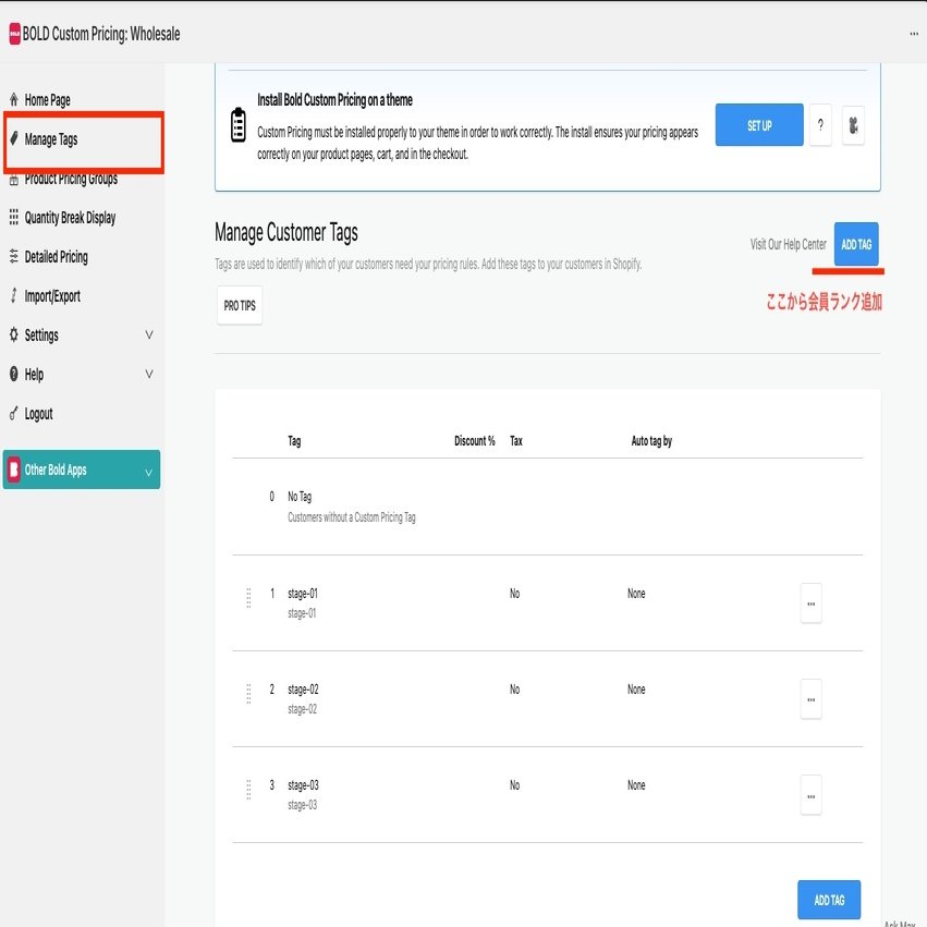 「ADD TAG」から新しい会員ランクを作成して下さい。